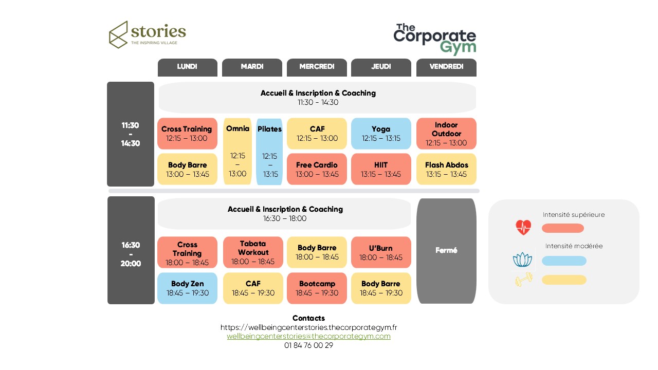 - Body Zen : Cours tourné vers la prise de conscience du corps, la mobilité et la détente musculaire.